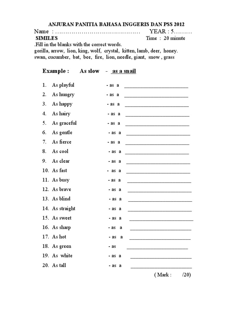Bahasa inggeris tahun 3. Bahasa Inggeris English Penulisan Tahun 6 UPSR Bahagian A Jawapan.