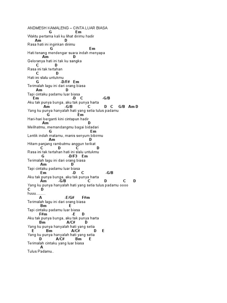 Chord Gitar Andmesh Kamaleng Cinta Luar Biasa Intro Facebook